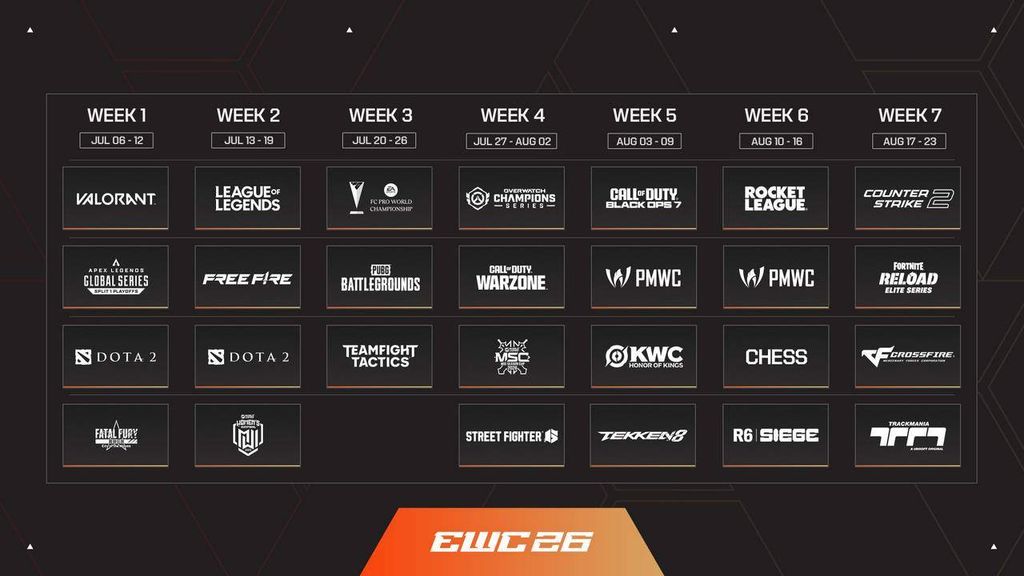 - Đường đến EWC: Hệ thống vòng loại quy mô toàn cầu, liên kết các giải đấu chuyên nghiệp, bán chuyên và phong trào, giúp mở lộ trình rõ ràng để các đội có thể đến với EWC tại Riyadh.